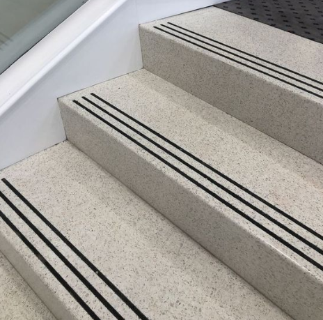 Material keramik tangga tidak licin ini dapat dipilih dari jenis marmer, keramik biasa atau batuan asli. Bedanya, pada bagian anak tangga, diberi satu balok kayu tambahan yang menyambung dengan keramik. Jadi, saat anak tangga diinjak, grip kayu memastikan keramik tetap aman digunakan.