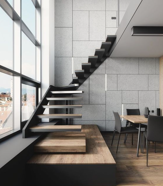 Jangan dibayangkan tangga kamu akan melayang – layang diudara. Model tangga besi yang minimalis dengan konsep seperti melayang ini karena anak tangganya akan dipasang dengan ditanam di beton atau dinding rumah kamu sehingga akan memberikan kesan melayang.