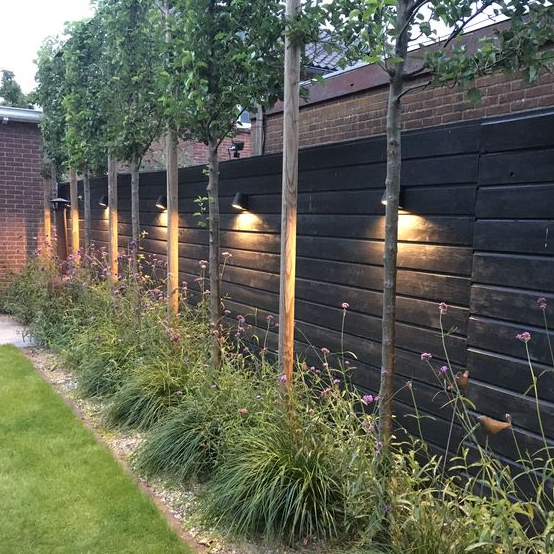 Warna hitam memang cukup banyak diterapkan di pagar rumah mewah. Hal itu karena warna hitam memberikan kesan yang berkelas dan elegan. Tak hanya itu, pagar rumah berwarna hitam pun memberikan kesan yang kokoh serta cocok sekali diaplikasikan di pagar karena akan memberikan juga rasa aman pada para penghuni rumah. Agar area depan lebih cantik, Anda bisa menambahkan lampu taman di sisi kanan dan kiri pagar.