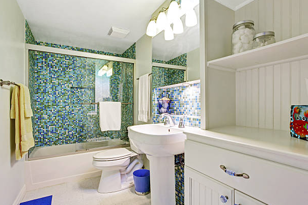 Berikan sentuhan artistik pada kamar mandi minimalis dengan mengaplikasikan desain mosaik di area shower. Pilih mozaik dengan pola atau warna yang menarik untuk menciptakan aksen visual yang menakjubkan. Anda dapat menggunakan mozaik pada dinding shower atau lantai untuk menciptakan tampilan yang unik dan indah.