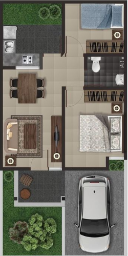 3.Denah Rumah Minimalis 2 Kamar 6×8 Cozy