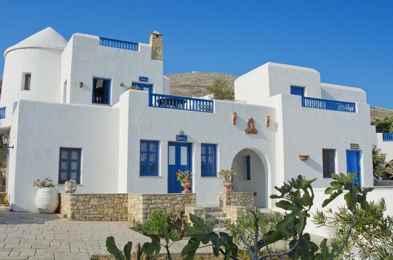 Rumah ala Santorini akan terkesan lebih homey dengan menambahkan tanaman hias di area luar rumah. Tanaman hijau juga memberikan kesan dekat dengan alam.