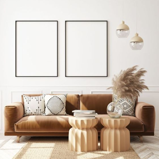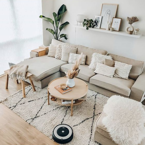 Konsep interior scandinavian membuat ruang tamu Anda memiliki kesan rapih dan bersih. Pada konsep ini, penggunaan warna didominasi dengan warna monokrom beserta furniture yang minimalis. Untuk memberikan kesan artsy pada ruang tamu, Anda bisa menambahkan rak gantung ataupun dekor artistik modern lainnya.