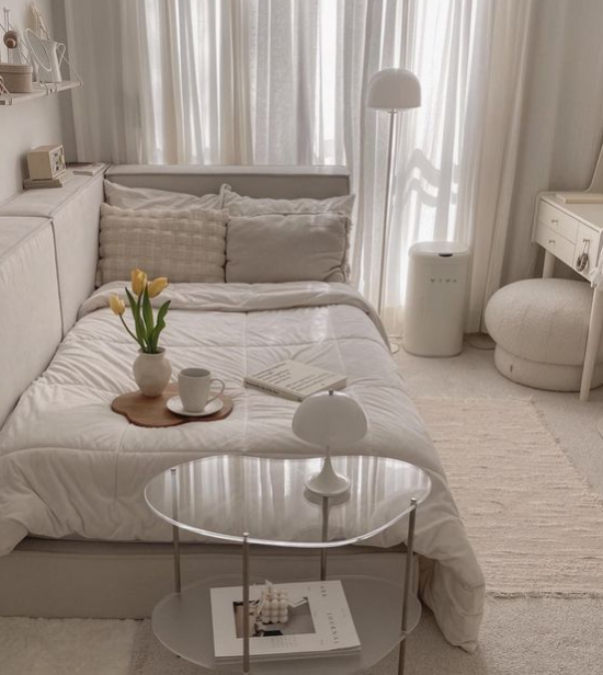 Warna yang memiliki tone netral menciptakan nuansa ruangan yang bersih, rapi, dan tertata. Jadi usahakan buat desain kamar yang nyaman mulai pemilihan cat dinding hingga furniture yang akan ditambahkan ke dalamnya.