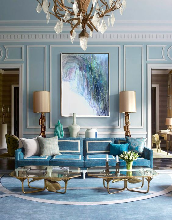 Kesan rileks akan didapatkan dari rumah dengan perpaduan warna cat biru ini. Hal itu karena warna biru identic dengan ketenangan serta keseimbangan. Anda bisa memadukan warna biru laut dengan biru abu-abu untuk mendapatkan desain interior rumah klasik yang lebih artistic.