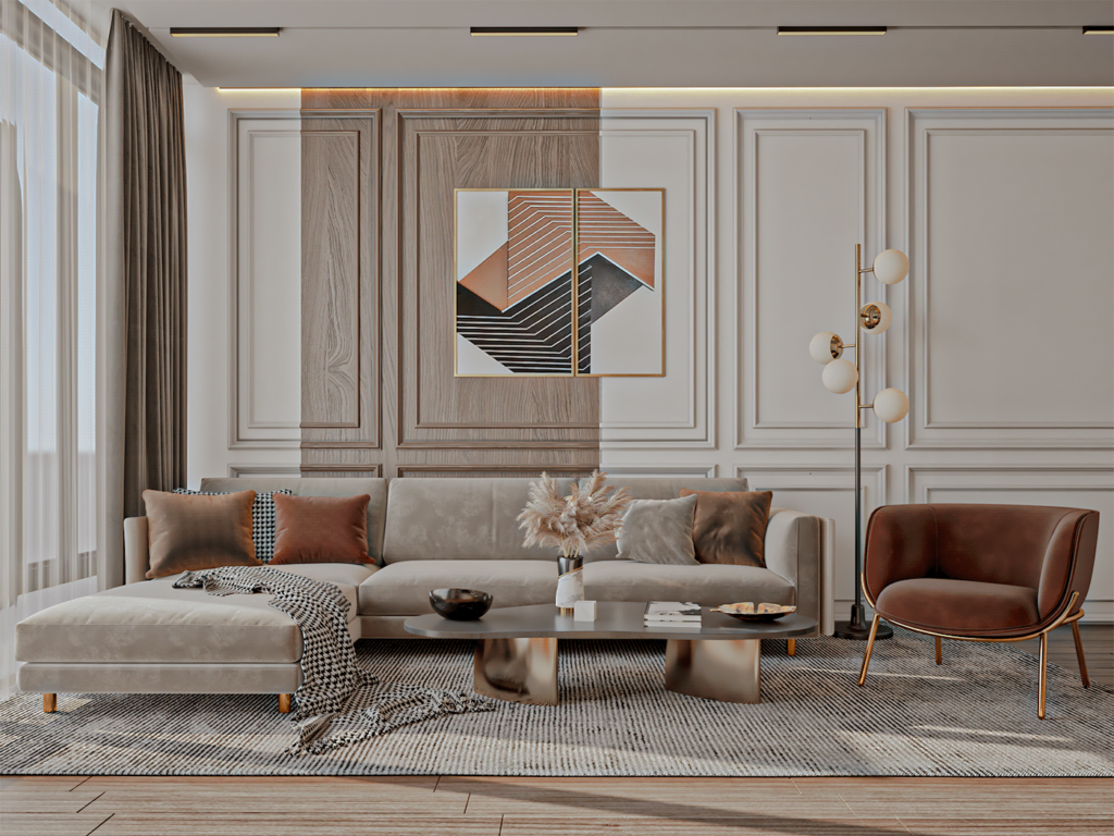 Perlu penataan yang simetris untuk rumah dengan desain interior gaya klasik. Sentuhan warna-warna alam seperti cokelat, hijau, biru gelap dan warna tanah diperlukan untuk desain ini. Selain itu, juga bisa ditambahkan warna-warna yang terang. Susun ornamen-ornamen secara rapi supaya menegaskan sisi mewah, glamor dan elegan pada ruangan rumah dengan desain ini.