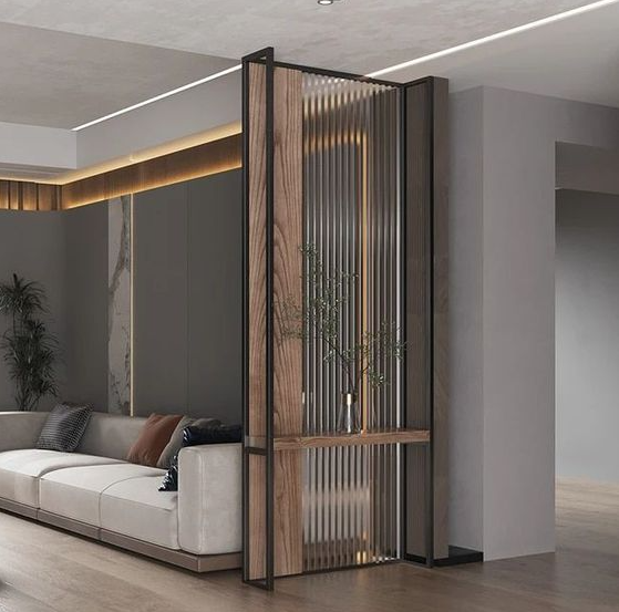 Secara umum, desain sekat ruang tamu dengan tembok dan kombinasi material kayu ini sangat cocok diterapkan pada rumah hunian bergaya Japandi. Yang mana, hal inilah yang nantinya akan memberikan tampilan rumah hunian terlihat lebih cantik, estetik dan nyaman. Di samping itu, Anda juga bisa memanfaatkan area sekat untuk meletakkan berbagai dekorasi seperti frame foto, tanaman hias dan lain – lain.
