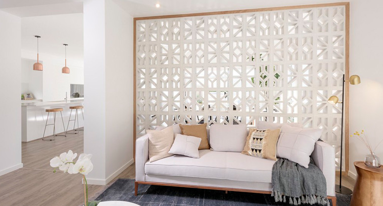 Bagi Anda yang ingin membuat tampilan rumah lebih trendi ala café kekinian, maka bisa membuat sekat roster ruang tamu dari beton. Dengan mengaplikasikan sekat ruang tamu ini, maka akan menjadikan ruangan lebih privat dan tetap space-saving serta leluasa. Anda juga bisa menambahkan lampu neon custom sesuai dengan keinginan agar tampilannya lebih menarik.