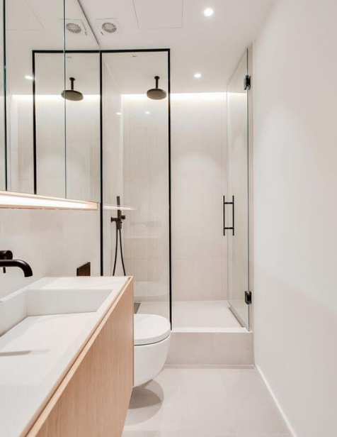 Padukan dengan keramik lantai berwarna putih atau beige untuk memperkuat kesan modern dan minimalis. Jika ingin menambahkan warna, Anda bisa memilih perabot kamar mandi berwarna coklat tua. Dengan begini, kesan yang telah diciptakan tidak akan rusak.
