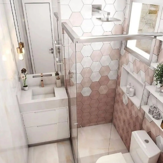 Keramik bermotif geometrik akan menciptakan nuansa modern di dalam kamar mandi Anda. Selain itu, keramik jenis ini juga cocok untuk kamar mandi kecil ataupun besar. Namun, ukuran kamar mandi Anda menentukan ukuran motif geometrik yang harus digunakan. Jika kamar mandi Anda luas, Anda bisa menggunakan keramik dinding kamar mandi dengan ukuran geometrik besar.