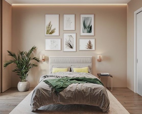 Rekomendasi cat kamar lainnya adalah krem. Dengan warna tersebut, ruangan sempit akan terasa lebih luas dibandingkan ukuran sebenarnya. Tambahkan berbagai dekorasi kamar lainnya dengan warna senada seperti lukisan dan karpet. Dengan begitu, kamar tidak akan terlihat monoton.