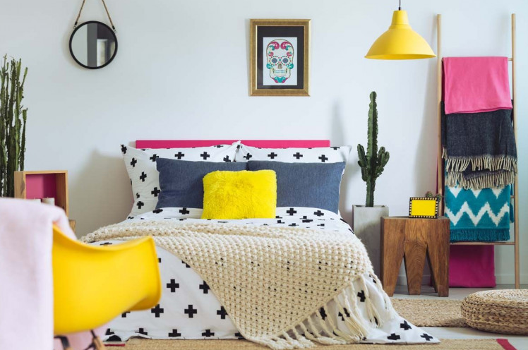 Untuk kamu yang menyukai gaya eklektik, kamu dapat menggabungkan unsur historis dengan gaya baru. Selain itu, kamu juga dapat menggabungkan desain antara pola geometris dengan pemilihan warna yang cerah. Selain menjadikan tampilan desain kamar yang dinamis, gaya ini juga dapat memberikan kesan yang lebih ceria.